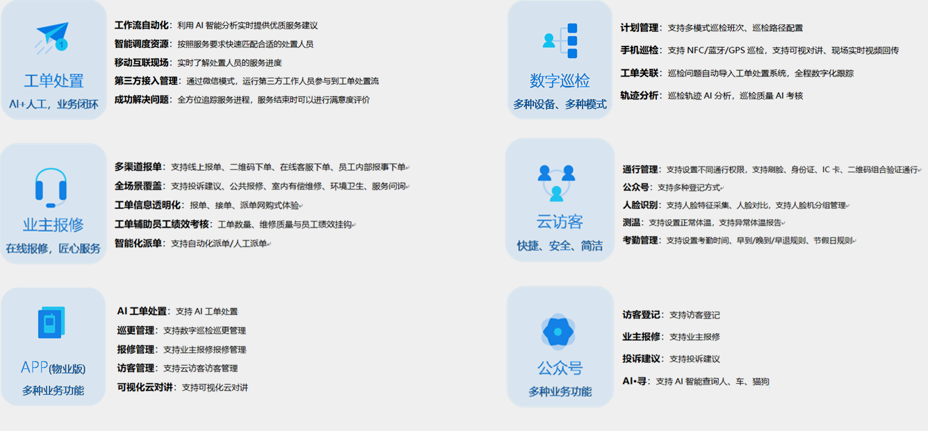 本方案通過(guò)AI技術(shù)的加載實(shí)現(xiàn)園區(qū)安防與園區(qū)管理應(yīng)用的智慧化升級(jí),提升園區(qū)安全等級(jí)和管理效率。將物聯(lián)網(wǎng)應(yīng)用神經(jīng)延伸至園區(qū)各種業(yè)務(wù)場(chǎng)景,實(shí)現(xiàn)人、車(chē)、物數(shù)據(jù)信息線上融合與計(jì)算,為園區(qū)智慧化管理提供數(shù)據(jù)源。助力園區(qū)實(shí)現(xiàn)安全等級(jí)提升、工作效率提升、管理成本下降。